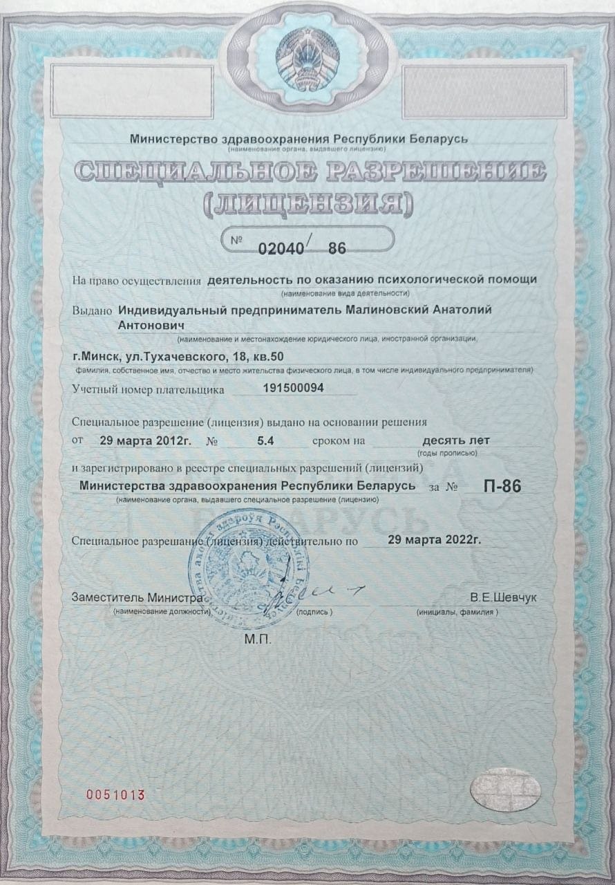 Индивидуальный предприниматель: Малиновский Анатолий Антонович